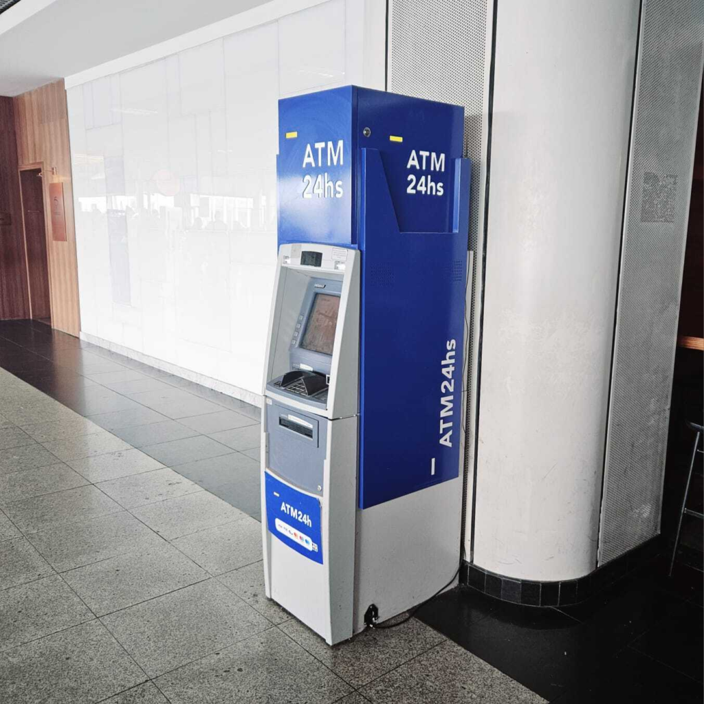 ATM 24h machines are widely distributed in these places, offering continuous access, even outside banking hours.